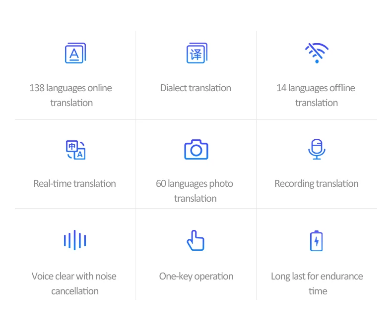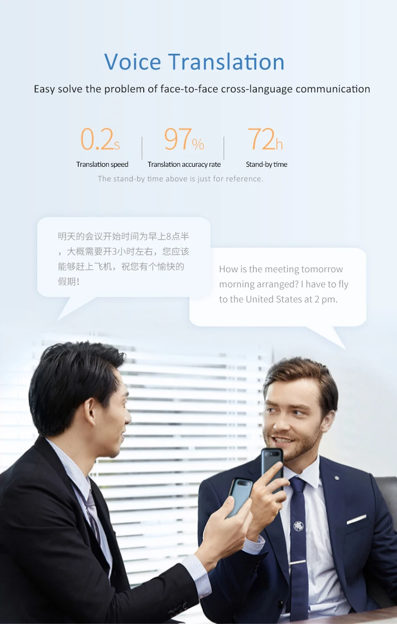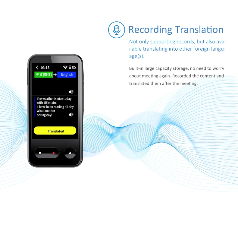 It supports Bluetooth connection, and in noisy environments, you can clearly transmit your translated content and recorded content to your ears. Using Bluetooth low power can facilitate the work of battery-powered devices and extend the use of the device.