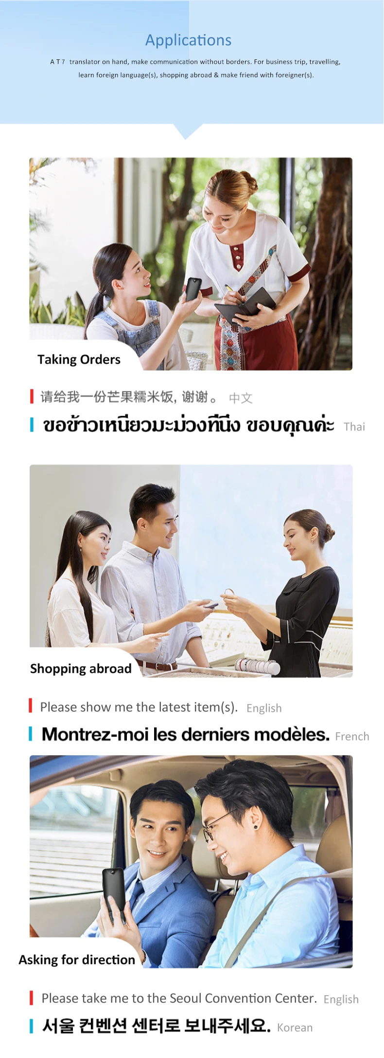 trnslator can translate your speech into foreign language text, with high level of intelligence and high translation speed. Make cross-language communication so simple and efficient.