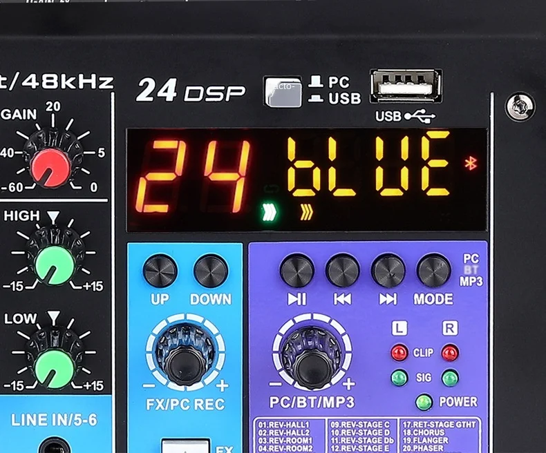 Input channel:MIC*4、2REC、PC、2LINE、USB、BT、3.5MINI