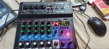 Product descriptionThe mixer is a multi-purpose 4-channel mixer with a sound card that can be meet users of home music production, webcast, K song and other needs.FeaturesThe mixer is equipped with input gain and high bass adjustment, built-in 48V phantom power supply for condenser microphone direct power supply, high-definition headset output port, MP3 broadcast, device with a sound card can be directly connected to the PC.Mixer compact, lightweight, can be directly connected to the PC’s USB port power supply,No additional power, can be connected to the computer through the USB power supply to run, eliminating the need forWith the trouble with an external adapter, you can also use the mobile power or USB AC / DC.The adapter is powered by the adapter.