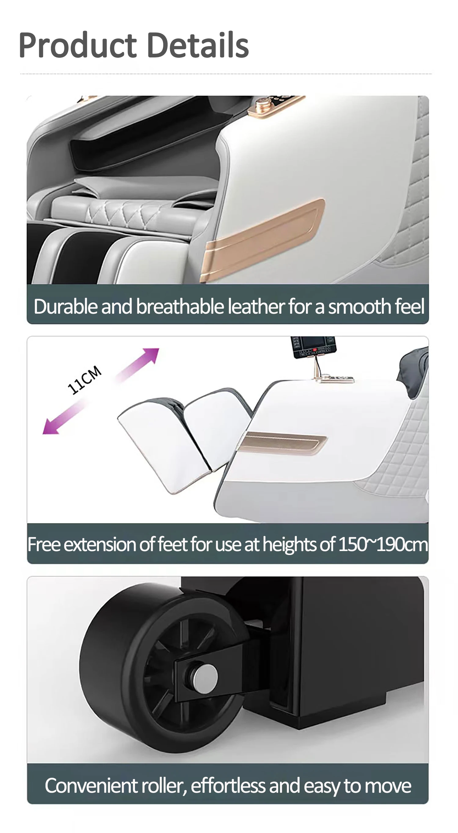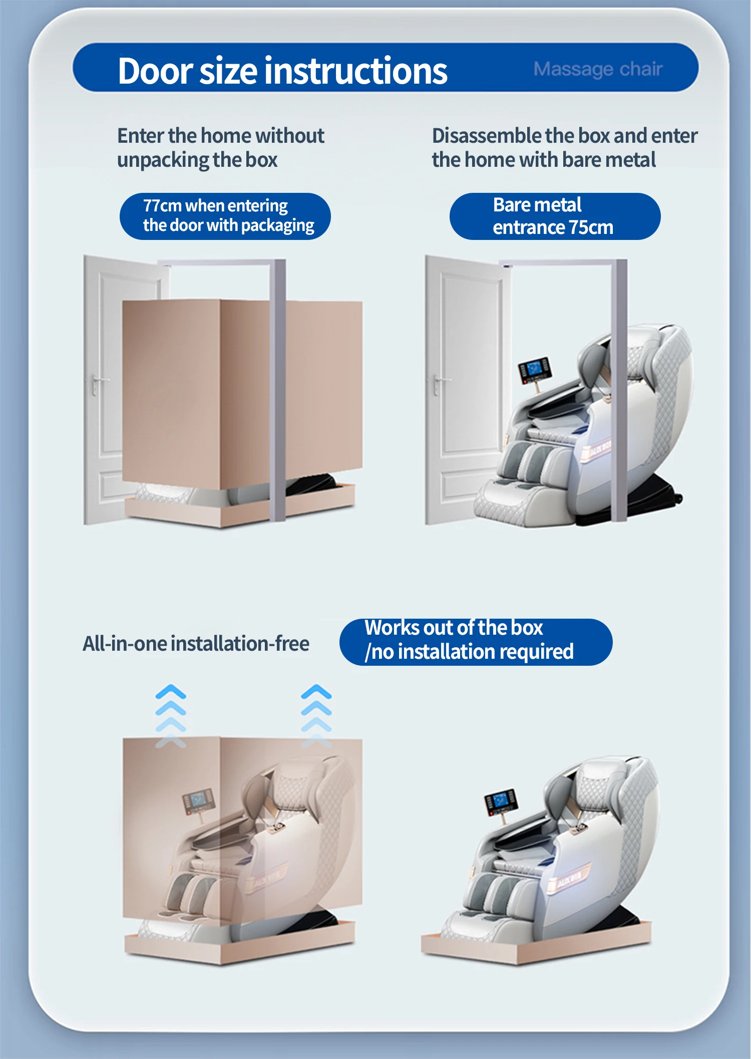 Deeply relax with all your body and soul, as if you are in space,feeling the comfort brought by the massage chair,and your whole body is light and floating