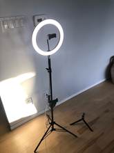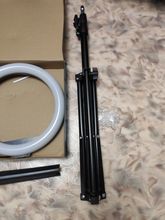Fast shipping, the packaging comes well and but the very damaged box. The tripod is high with hoop almost 2 meters and adjustable at different height and even to put it in table. Bring several accessories to put on mobile and to put it on the tripod instead of the hoop. The hoop can be hung. The cable is long with the remote. To change mode to RGB the intensity of white light must be lowered. What I don't like is that the hoop moving it sounds the LEDs inside, they sound loose. I hope it goes bad, I can't open it so I can hold it right. For the price you have it is very good. It's for a gift and you're gonna love it. I recommend the store