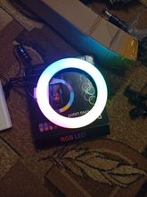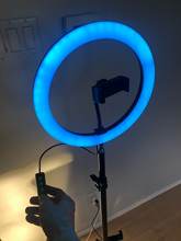 Very nice ring light, positive appearance: light, several colors available including some in gradients, assemble and disassemble very easily, usb cable can connect anywhere even outside, easily transported. Negative: not for professional use because the light is not powerful enough and a remote control to change and block the degraded colors would have been great. Otherwise the product itself is suitable for its price. Arrive quickly in France. Excellent communication with store⭐️⭐️⭐️⭐️⭐️⭐️⭐️⭐️⭐️⭐️