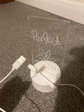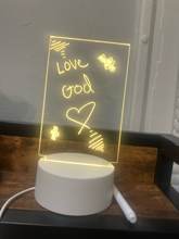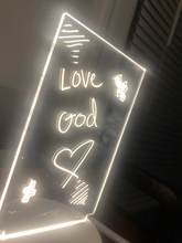 Very good product, ideal for personal use or for gifting, in fact give to write with a brush that comes, the led is in yellow color and in a place with low light it is very highlighted what is written, also comes a paninho to clean and erase what was written, perfect for giving.