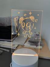 it's a piece of acrylic and a base with leds, similar to what you'd find anywhere. It comes with a white dry erase marker. it's not as whimsical as it looks in the pictures of course but it is a decent light and a good dry erase board. As far as the lit board effect, it only works on the smooth side (don't write on the frosted side) and it's kind of ok. I have no complaints for the $1 it cost me.