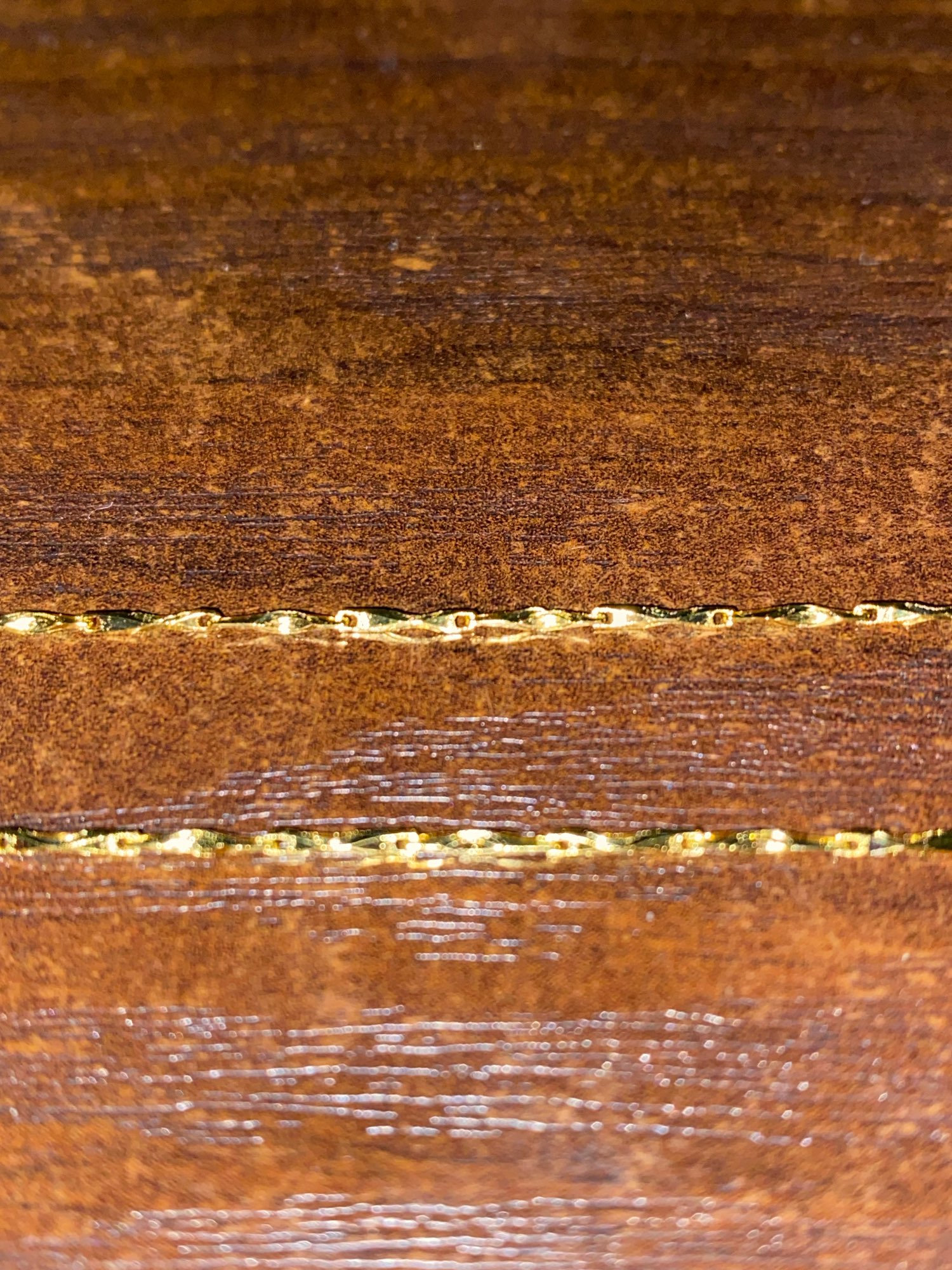 The chain is more than beautiful. Nonse if appreciated in the photo but its links are precious. I arrive in 3 weeks and I'm in mexicali. It's silver and I recommend the store.