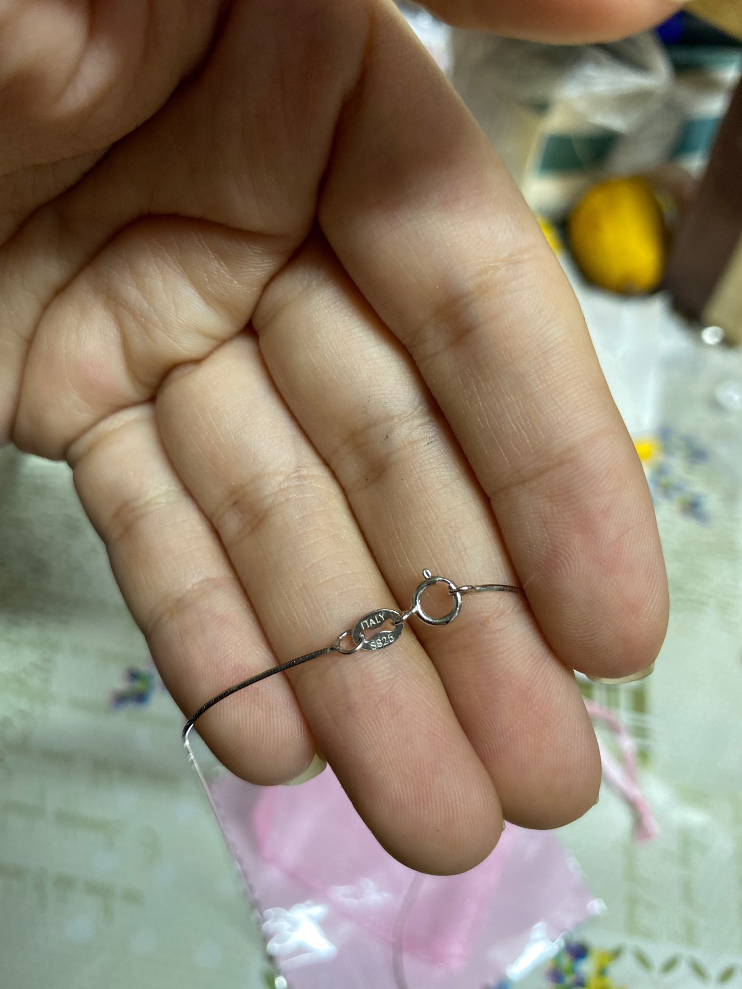 Thank you, beautiful chain, there is a stamp, has arrived weeks for 4.