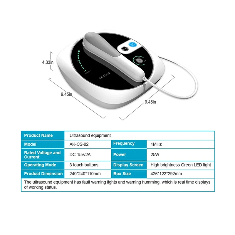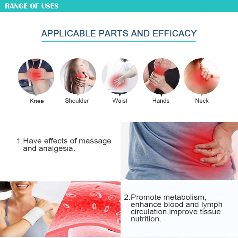 6. Combines ultrasound, heat and acupuncture, 3 in 1 effect 7. Fashionable and smart appearance, full luxury 8. Easy to operate, intensity and time adjustable