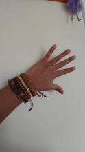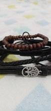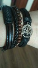 When opened, there was a strong smell, after a couple of days almost does not feel. The smell looks like skin. I took the first set, with a tree of peace. Because the set was on the paper frame for a while there was a strong bend, but then disappeared. The part that on the elastic band with beads, quite tightly presses, leaving traces, and the rest thanks to the braid do not cause discomfort. Tighten them conveniently-with the hand you put them on, hold the rope, the other pull the other end, voila, ready. Because "bead" had to be postponed, decided to take another, but a little different and will be normal. P.S. Nothing better came up with how to put the battery, to represent the proportions...