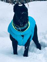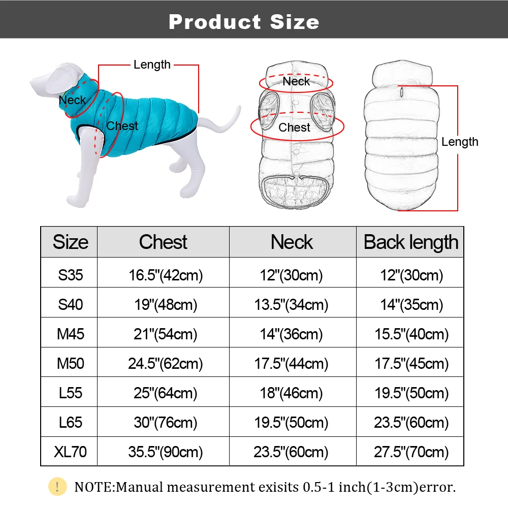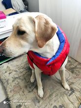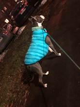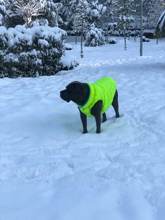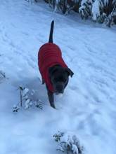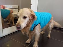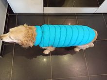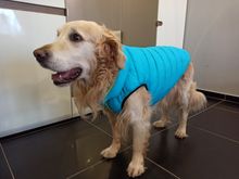 Warm and good jacket. Came to Bulgaria for 30 days. Fit perfectly to my 32 kg golden. I'm satisfied. Recomend store.