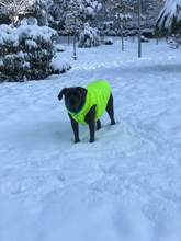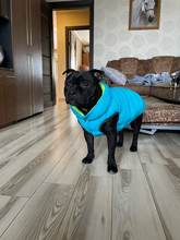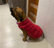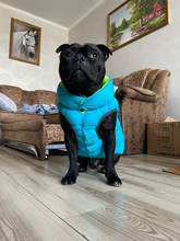 To Omsk delivery 1,5 months. The dog is happy. Couldn't catch the frame. She was going for a walk. The waistcoat is flimsy. Not suitable for walking with dogs, as they tear nails. The fabric is thin, stretch, synthetics. Buttons are plastic, fastened tightly. The vest is like an inflated one. OG 66, the length of the back is 55, the size is in my opinion L. It came perfectly. There are no complaints about the quality of seams. It looks very decent. I hope that the fabric does not spread. For the quality of the fabric would reduce the stars, but then my comment will not be visible.