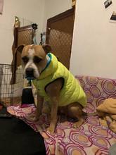Sent fast, delivery fast, very warm, the dog will be warm, the size range matches, did not like the buttons on the chest, the next will take with a zipper on the back.