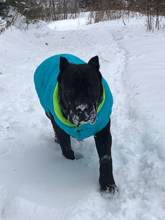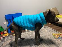 The vest is a little too big for us, but I bought for a 7-month-old puppy Cane Corso. We are still growing, so by the end of winter it will be exactly the size. The vest is two-sided, this is a plus. On the quality of 5 stars I will not give-threads stick out, in places the other side shines through, A great doubt is the strength of plastic buttons. But it would be funny to expect the quality of premium at such a price)) in general, I'm happy, the dog likes it) the store is responsible, sent immediately, received exactly a month later.