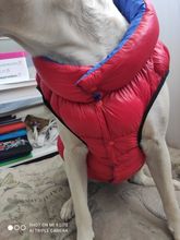 The jacket is super! Happy with the purchase and me and my dog. The jacket is light, comfortable and warm, easy to dress. I took on the Suku kadebo size 6XL just right, the size corresponds to the table. Delivery about 1 month. Only the color does not match a little: not blue, but rather blue.