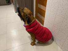 Good jacket, delivery is very fast, the quality is quite good, very light in weight, but warm, took for a large dachshund