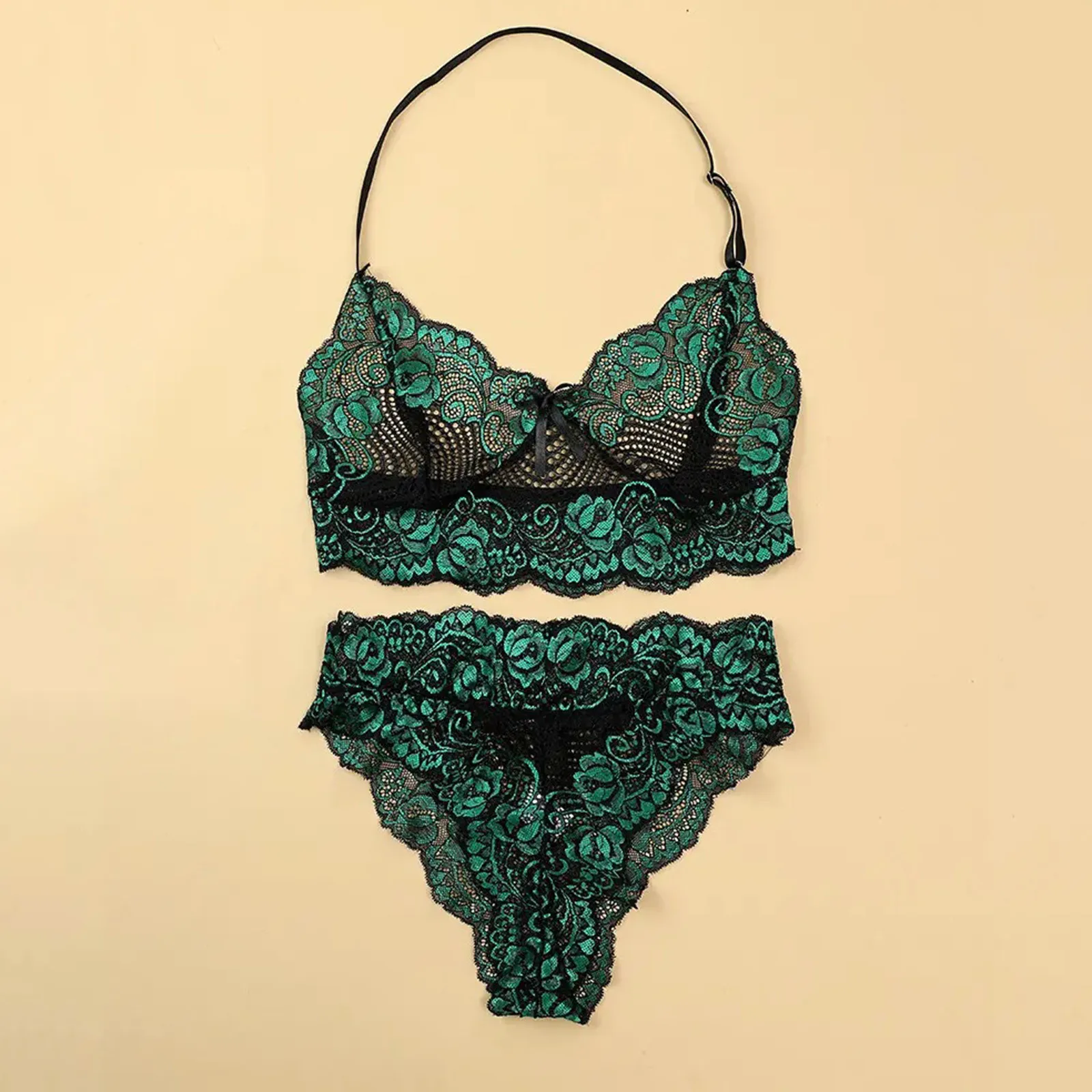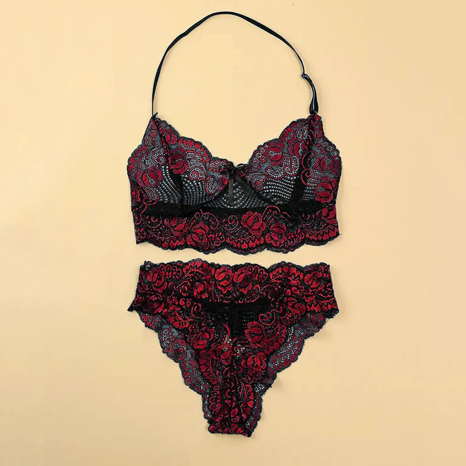 For my money it is a beautiful set, the fabric is light lace, the whole thread does not stick out, but instead of my size it is very small, I will not be able to wear it very badly