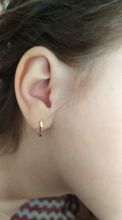 Lovely small earrings, lovely gold colour. Quite light, so you barely can feel on your ear. Recommend it (;
