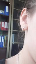 Fast shipping. Earrings are tiny. Very light, the skin on the ears does not irritate, although usually there is a reaction to jewelry immediately. It is stuffed with a sample, but it is strange) most likely the material is not as stated in the description. For the first day, the socks did not fit and did not darken