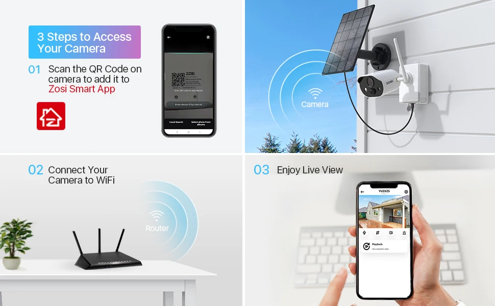 1.Scan the QR code on camera to add it to ZOSI Smart App