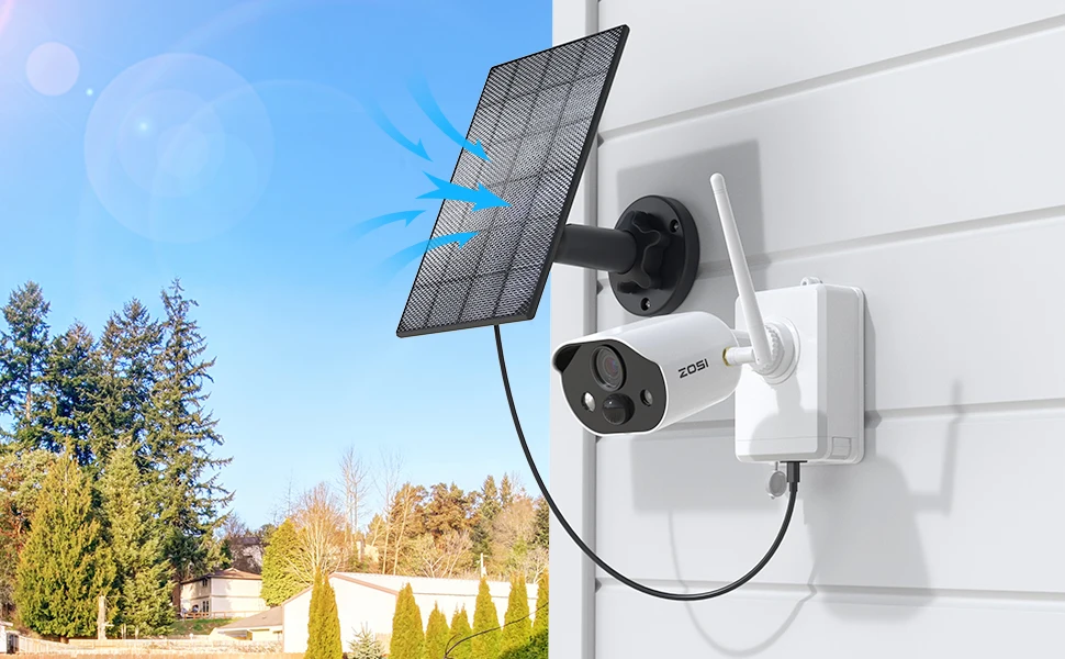 Never worry about battery drainage again with ZOSI solar panel, enjoy sustainable solar power for non-stop surveillance.